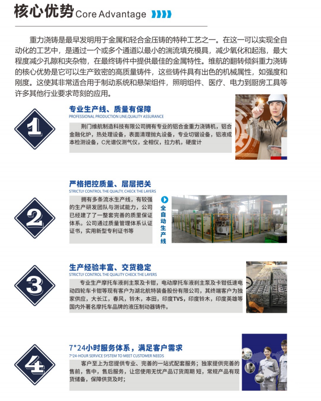 目前公司擁有半自動重力鑄造線一條,配半自動0-90°重力翻轉(zhuǎn)澆鑄機9臺,日產(chǎn)能可達6500件標(biāo)準(zhǔn)卡鉗。